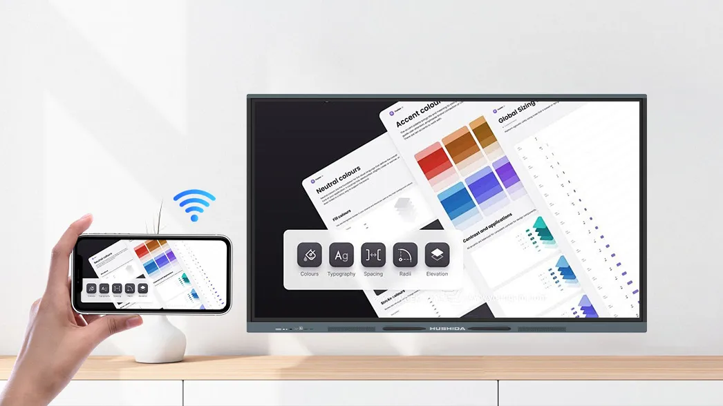 Projetez depuis n’importe quel appareil grâce au BYOD et au sans-fil, et gérez vos contenus via le CMS HUSHIDA pour un contrôle complet et intuitif de vos écrans et affichages numériques.